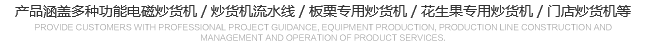 公司產(chǎn)品涵蓋多種功能電磁炒貨機(jī),炒貨機(jī)流水線(xiàn),板栗專(zhuān)用炒貨機(jī),花生果專(zhuān)用炒貨機(jī),門(mén)店炒貨機(jī)等。 規(guī)格品種齊全、產(chǎn)品質(zhì)量穩(wěn)定可靠,產(chǎn)品遠(yuǎn)銷(xiāo)國(guó)內(nèi)外。