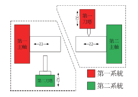 第一軸群的刀塔可與第二主軸一同加工;同時(shí)第一主軸借用第二刀塔加工降低機(jī)臺(tái)所需要的刀具數(shù)量,更靈活的加工應(yīng)用,提升加工效率。