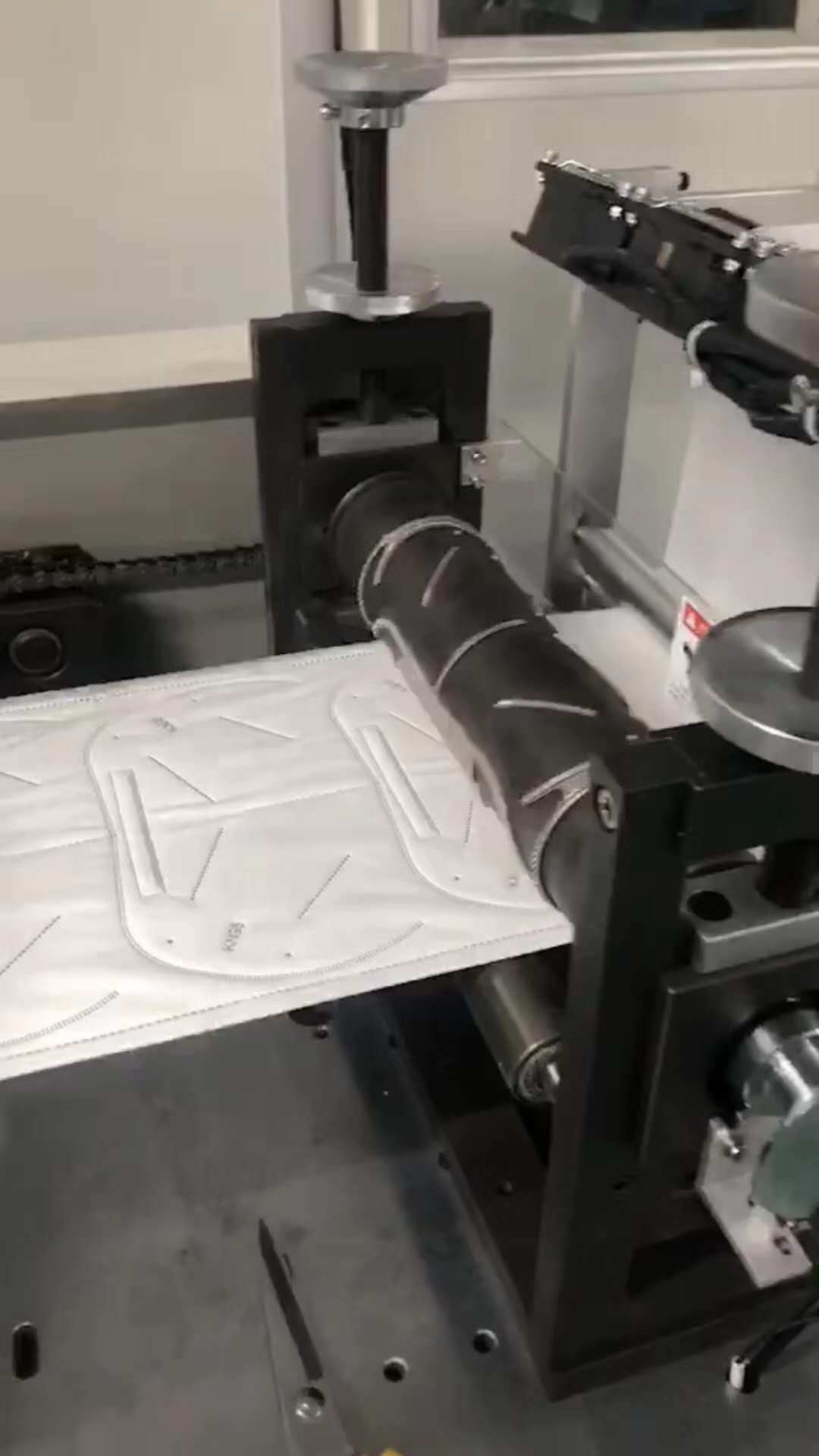 2.自動(dòng)打片成型機(jī):帶有自動(dòng)穿鼻梁線機(jī)構(gòu),同步實(shí)現(xiàn)超聲焊接和