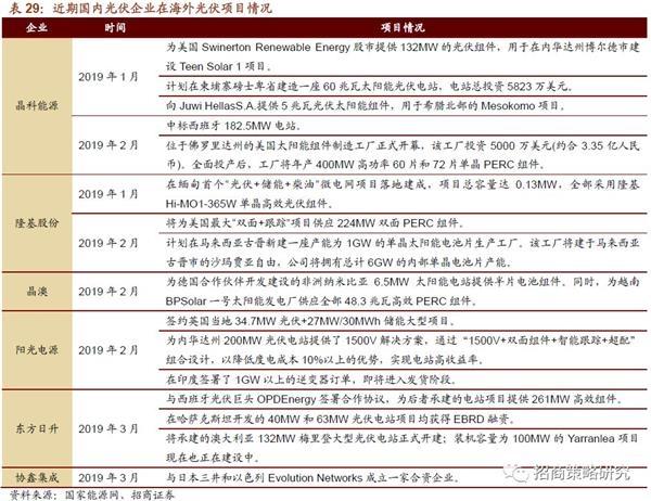 光伏——平價(jià)上網(wǎng)時(shí)代降本提效。“531”新政以后,產(chǎn)業(yè)升級(jí)、降低成本、擴(kuò)大應(yīng)用成為光伏行業(yè)發(fā)展的主基調(diào)。國(guó)內(nèi)需求提升空間大,海外需求增長(zhǎng)動(dòng)力強(qiáng)勁。為了在全球市場(chǎng)中維持競(jìng)爭(zhēng)優(yōu)勢(shì),我國(guó)光伏行業(yè)未來(lái)的發(fā)展趨勢(shì)則是降本提效。成本方面,光伏行業(yè)龍頭企業(yè)相繼下調(diào)產(chǎn)品價(jià)格讓利下游;效率方面,高效率產(chǎn)品逐漸成為市場(chǎng)主流,如高轉(zhuǎn)換率產(chǎn)品單晶硅片和單晶PERC電池片等。隨著國(guó)內(nèi)外需求持續(xù)穩(wěn)定增長(zhǎng),光伏產(chǎn)業(yè)中上游環(huán)節(jié)需求將持續(xù)被激發(fā),特別是低成本高能效產(chǎn)品。