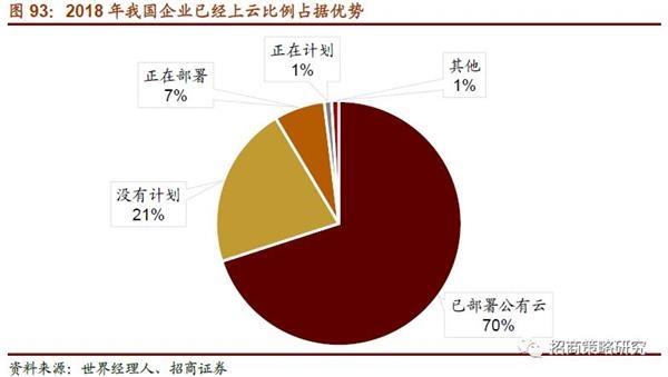 據(jù)世界經(jīng)理人發(fā)布的《2018年中國(guó)企業(yè)云計(jì)算應(yīng)用現(xiàn)狀及需求調(diào)研報(bào)告》,參與調(diào)研的2327家企業(yè)中,有70.3%已經(jīng)部署云,6.7%家企業(yè)正在部署,0.96%家企業(yè)準(zhǔn)備部署。