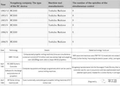 “東芝事件”中,日本東芝公司與挪威康士堡公司出口到蘇聯(lián)的設(shè)備詳細(xì)清單。